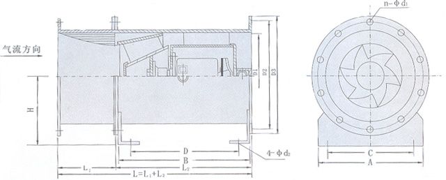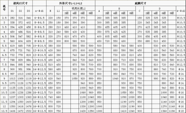 四、HTF(B)型風機外型尺寸表(單位:mm)